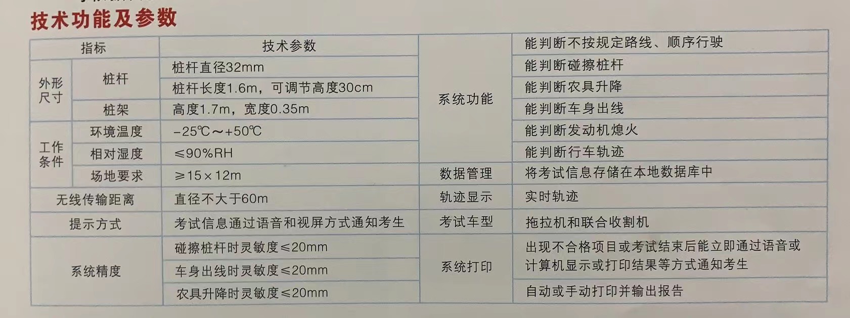 科目三場地駕駛技能考試系統(tǒng)通過無線方式采集考試車輛運行狀態(tài)、樁桿、庫線、農(nóng)具升降狀態(tài)等信號,模擬田間作業(yè)考試全過程。系統(tǒng)能實時跟蹤記錄考試軌跡,判斷、播報并顯示各類考試信息,最終輸出、儲存并打印成績責報告。系統(tǒng)可與科目一、科目二考試系統(tǒng)信息共享。